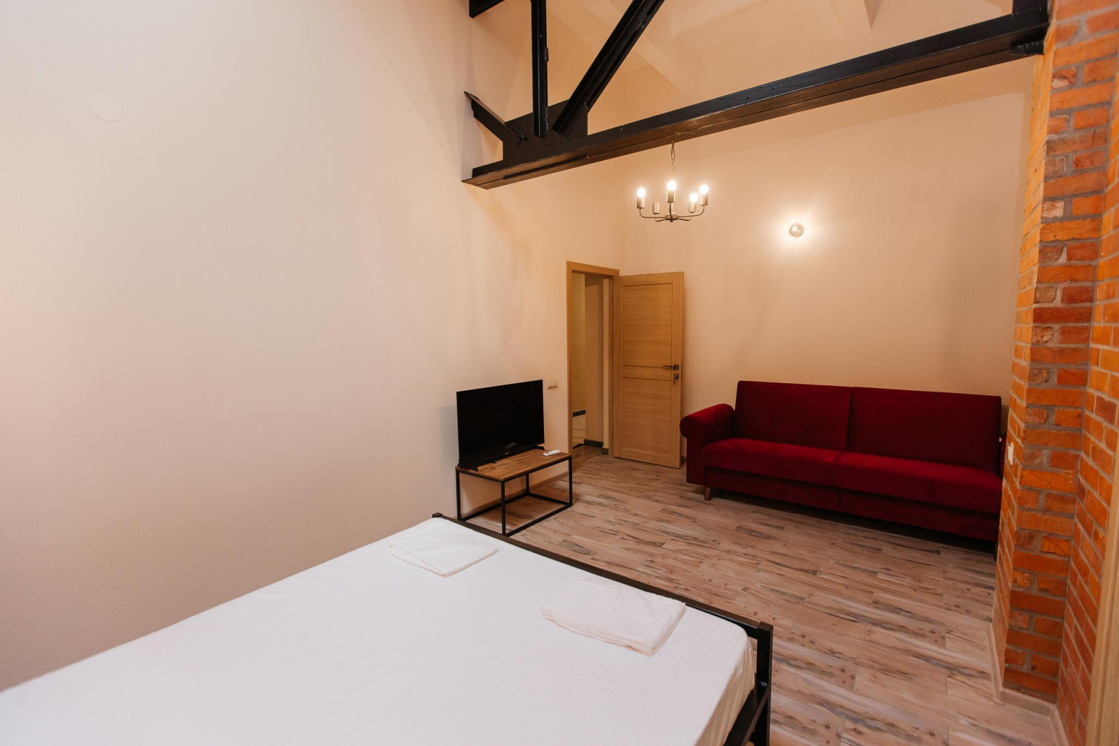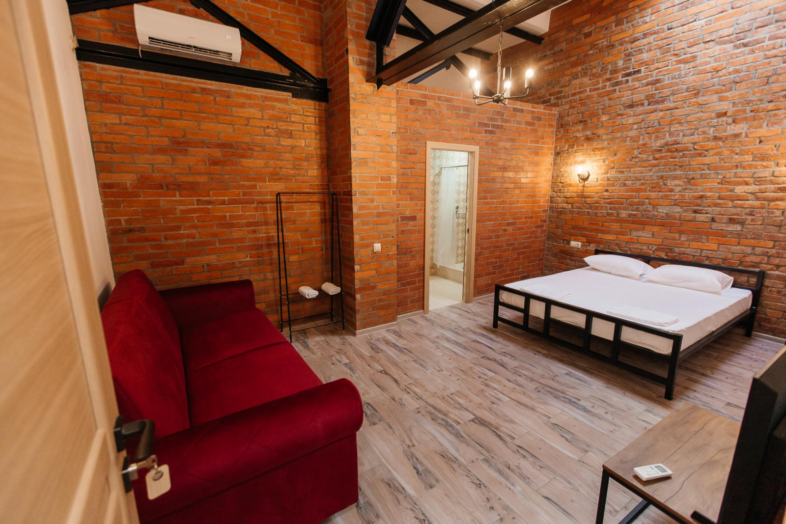 Cтильный номер повышенной комфортности, предусматривает всё, что необходимо для полноценного отдыха и комфортного проживания. В номере двуспальная кровать и диван ещё на 2-х человек, телевизор, Wi-Fi в номере, шкаф и кондиционер, холодильник. В ванной комнате душевая кабина и все удобства.